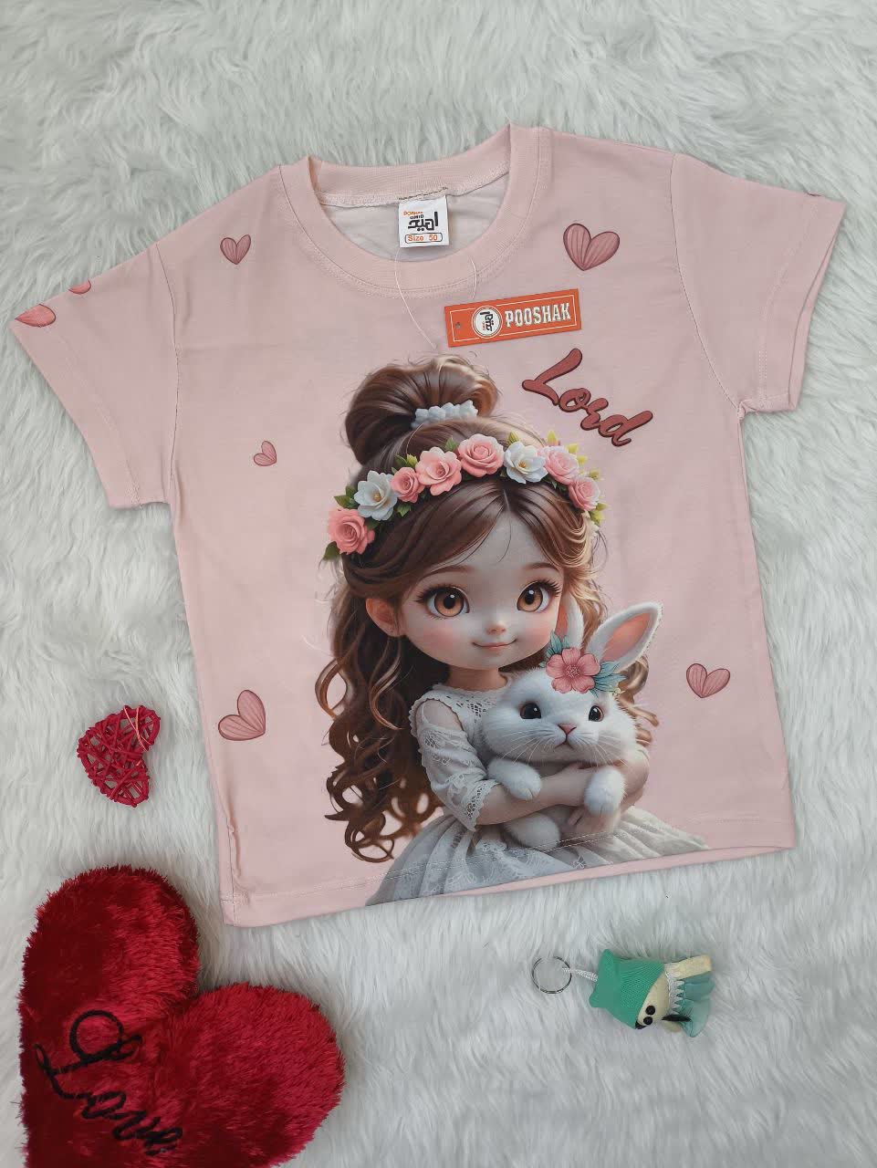 تیشرت دختر و خرگوش 🧶 جنس پارچه: پنبه یکرو تیپ لاکرا گرم بالا 👌بدون آبرفت و رنگدهی 💎ضمانت دوخت و چاپ 📏 سایز بندی : ۴۵ تا ۶۰