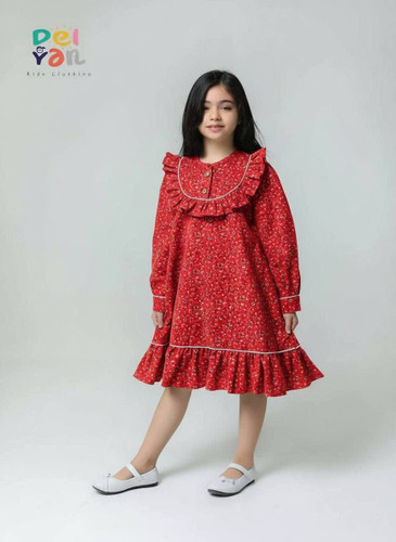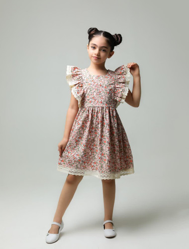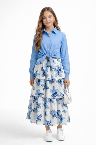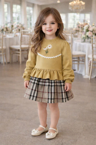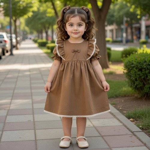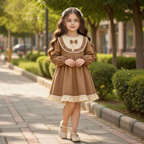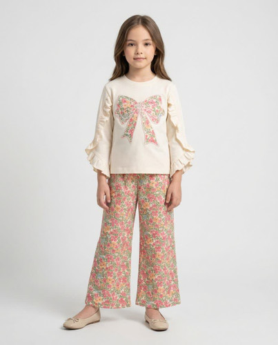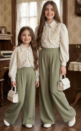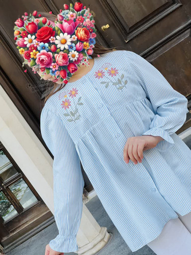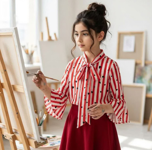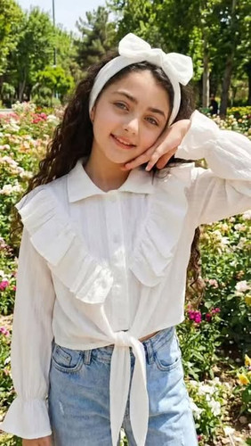 بلوز دخترانه گلدوزیشده کرمیرنگ با آستینهای پفی